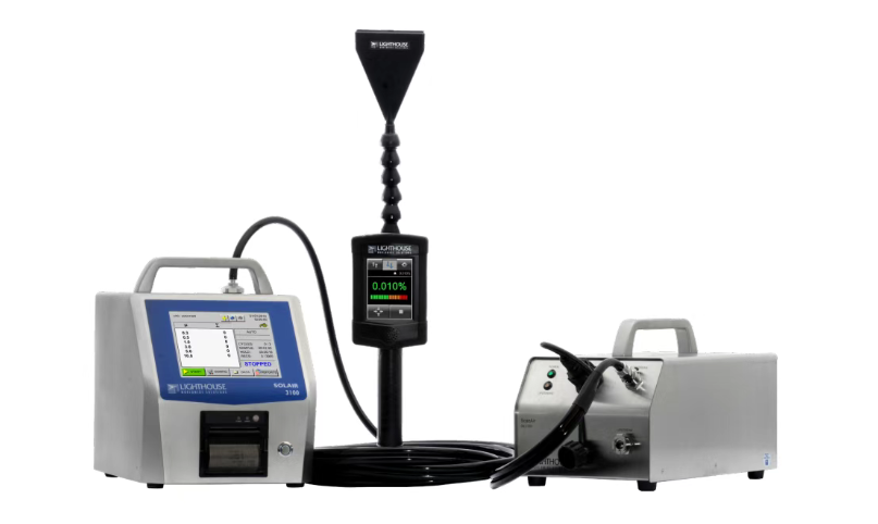• ScanAir Pro 的工作原理(一)系統組件與設置該系統的組件包括:一臺便攜式粒子計數器(如 Lighthouse SOLAIR 系列)、一個帶有內置觸摸屏的人體工程學掃描探頭、一個雙端口稀釋器,以及一個氣溶膠發生器(用于產生上游挑戰氣溶膠,可使用聚苯乙烯微球或聚 α 烯烴)。掃描探頭:這款輕便的手持式掃描探頭通過快拆旋轉鎖定連接器與粒子計數器相連,非常適合單手操作,即使在梯子上或難以觸及的空