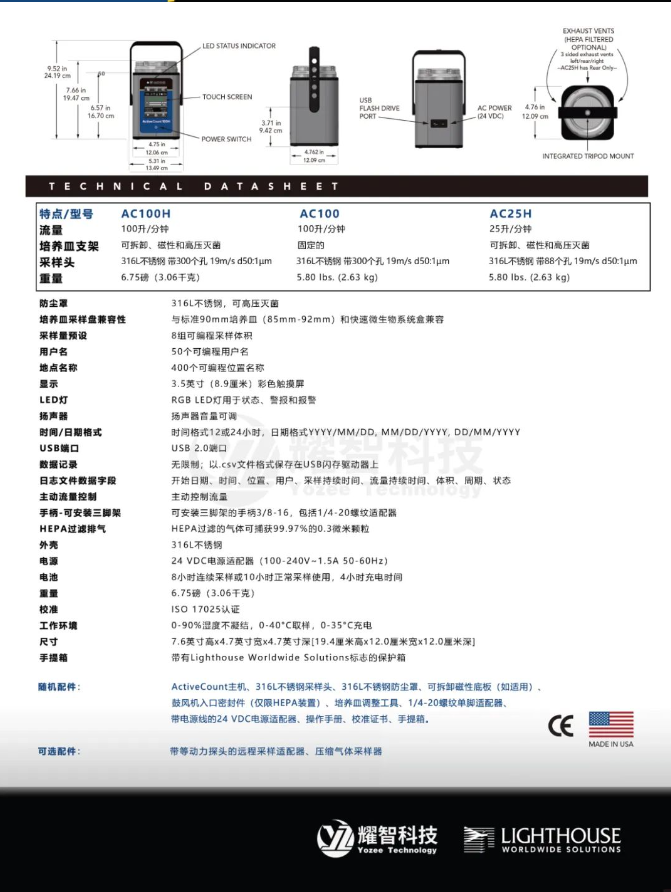 美國Lighthouse便攜式浮游菌采樣器 25L/min,100L/min